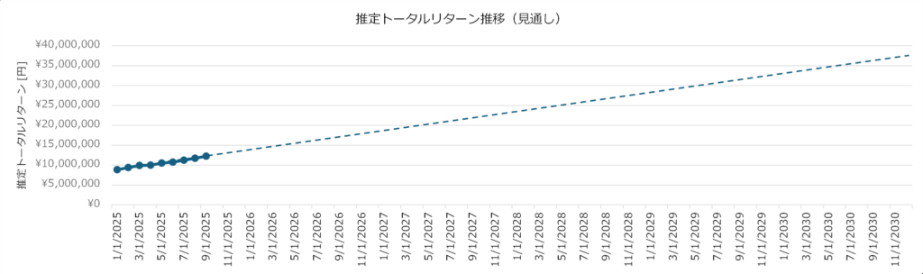 キャピタルゲインは予測が難しく、正直“タラレバ”の要素も多いです。ただ、現時点での試算では、4年後の2029年9月には約3,000万円のプラスになる見込みです。前提は以下としています。