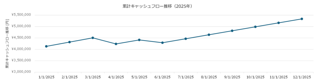 2025年12月時点の生涯累計キャッシュフローは+5,335,098円となっています。